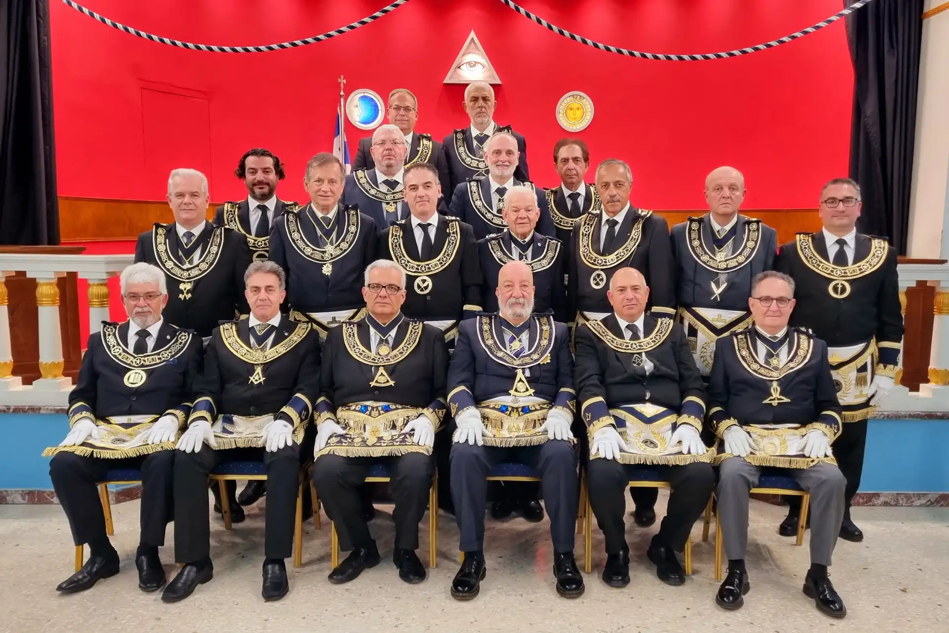 Ο Ενδοξ∴ Προσθ Μεγ∴Διδ∴ της ΜΣΤΚ Αδ∴ Μιχάλης Αγάθος με τον Μεγ∴ Διδ∴ της Περιφερειακής Μεγάλης Στοάς της Αγγλίας Αδ∴ Michael Hadjiconstantas, τον Ενδοξ∴Α’ Μεγ∴Εποπτ∴ της ΜΣΤΕ Αδ∴ Δημήτριο Μπεργούνη (δεξιά) και τον Πρώην Μεγ∴ Διδ∴ της Μεγ∴ Στ∴ της Αρμενίας Αδ∴ Leon Zeitounalian (αριστερά).