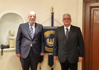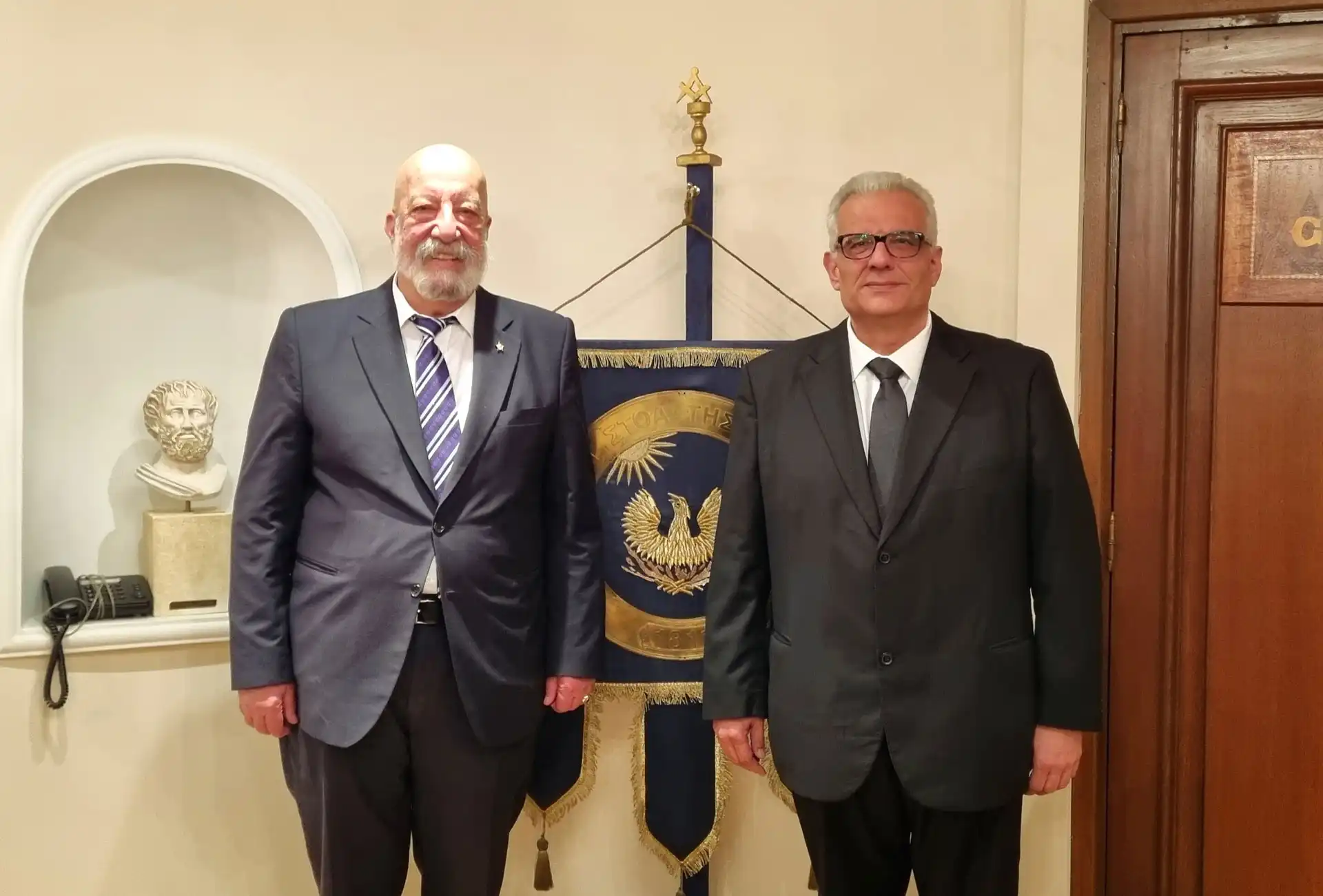 Ο Ενδοξ∴ Προσθ Μεγ∴Διδ∴της ΜΣΤΚ Αδ∴ Μιχάλης Αγάθος με τον Μεγ∴ Διδ∴ της Περιφερειακής Μεγάλης Στοάς της Αγγλίας Αδ∴ Michael Hadjiconstantas.